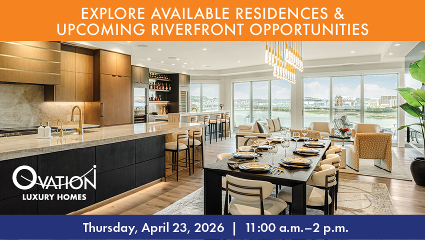 Join us at this open house designed for those ready to explore what’s available now, and what’s coming next, along Northern Kentucky’s premier riverfront. Tour our furnished model, walk through available residences, and get a clear look at upcoming opportunities at Ovation.